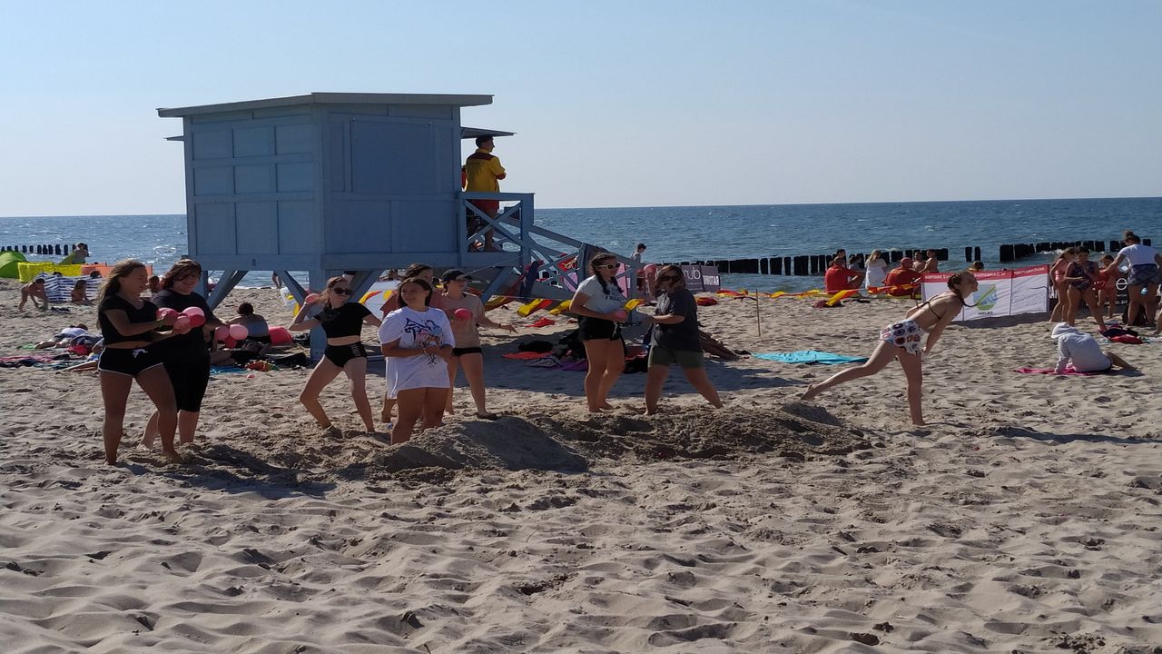 Wieczór filmowy: z popcornem. Turnieje sportowe, plażowanie i kąpiele: w morzu pod opieką ratowników wodnych.