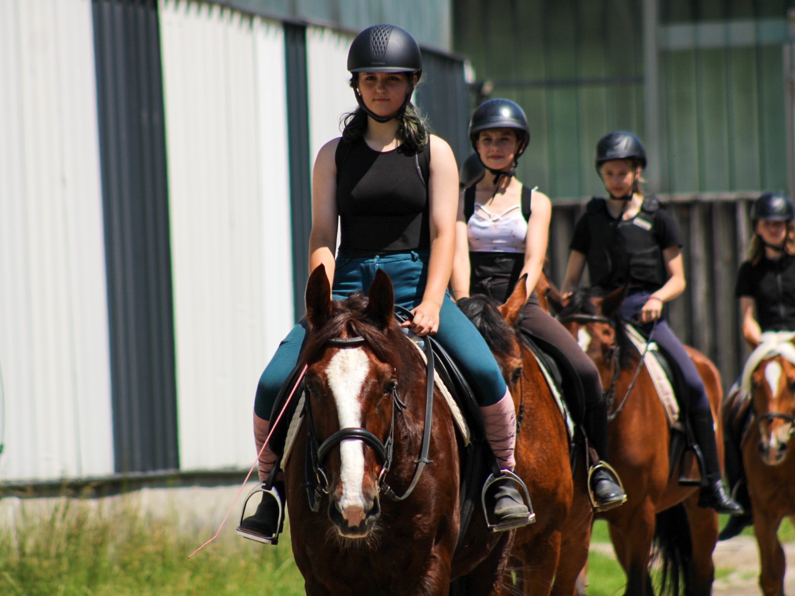– Zalecamy zabrać na obóz strój do jazdy konnej: buty z płaską podeszwą, sztylpy, spodnie (najlepiej bryczesy lub długie do kostki, dobrze przylegające, bez grubych szwów), nakrycie głowy: atestowany kask jeździecki, kurtkę przeciwdeszczową,