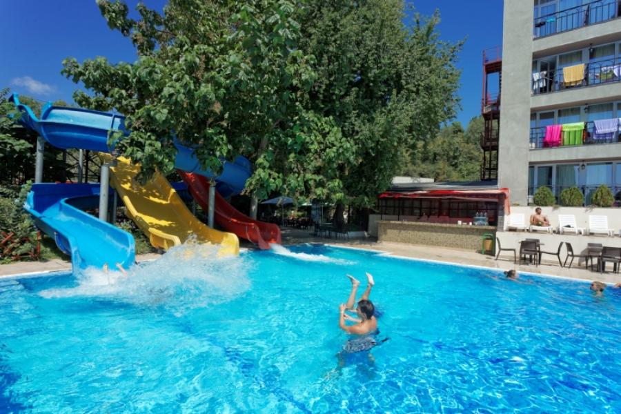 DUŻY ODKRYTY BASEN Z MINI AQUAPARKIEM i wydzieloną częścią dla dzieci, bezpłatne parasole i leżaki przy basenie (ilość ograniczona), restauracja z tarasem, barbeque, lobby bar z karaoke, recepcja z możliwością wynajęcia sejfu, punkt wymiany walut, tenis stołowy, bilard, gabinet lekarski, Wi-Fi – bezpłatne w holu koło recepcji, Wi-fi płatne w pokojach, salka z grami, wypożyczalnia rowerów, sklep. Przy hotelu WIELOFUNKCYJNE BOISKO SPORTOWE. Codzienny program animacyjny prowadzony przez hotel, obejmuje np.: tańce, siatkówkę, rzutki, piłkę wodną, aerobik w basenie, mini piłkę nożną, wieczorne animacje lub inne.