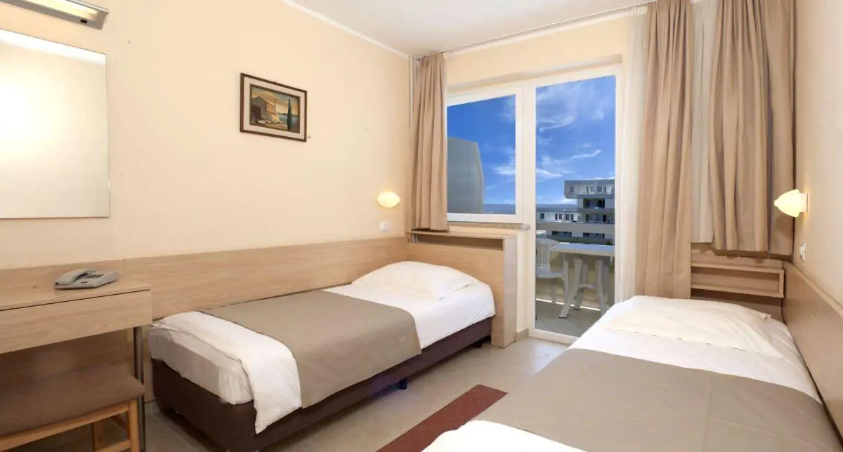 Hotel DELFIN PLAVA LAGUNA 2* – hotel położony jest na zielonym półwyspie na obrzeżach miasta, tylko kilka kroków od kamienistej plaży wyróżnionej Błękitną Flagą (zalecane obuwie do wody). Uczestnicy zakwaterowani będą w pokojach 2, 3-osobowych z łazienkami (w pokoju 3-osobowym możliwość dostawki). W każdym pokoju zapewniamy przenośny wentylator. Do dyspozycji na terenie hotelu: basen, leżaki, Spray Park – park wodny ze zjeżdżalniami i wodnym placem zabaw oraz boiska do siatkówki plażowej. W hotelu działa restauracja i bar. Na terenie hotelu prowadzone są animacje.