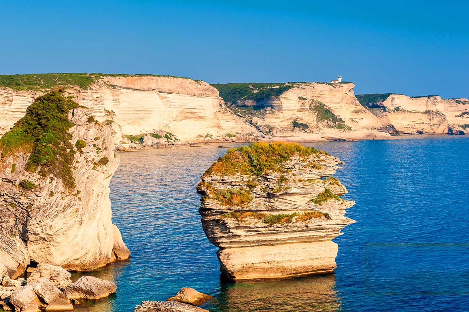 WYCIECZKA DO BONIFACIO – port – forteca założony w 833 r. wznosi się 70 m nad przejrzystymi wodami Morza Śródziemnego. Na pionowych, wapiennych skałach cypla usadowiły się wielopiętrowe domy. Kręte uliczki przypominają atmosferę średniowiecza. Jedyna okazja żeby zobaczyć legendarne schody Króla Aragonii. W pogodne dni widać oddaloną o 12 km Sardynię. Paul Valery powiedział, że to „najpiękniejszy koniec świata” – miejsce owiane tajemnicą, gdzie na każdym kroku legenda spotyka się z historią. Cena – ok. 45 euro/os. W Bonifacio proponujemy rejs statkiem w cenie ok. 20 euro/os.