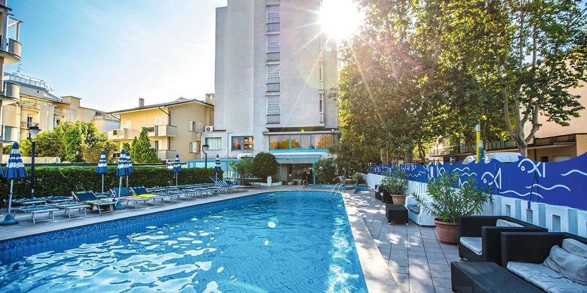 Hotel SENIOR 3* – nowoczesny hotel, położony w miejscowości Cattolica, zaledwie 150 metrów od piaszczystej plaży. Uczestnicy zakwaterowani będą w pokojach 3 i 4-osobowych z łazienkami (w pokojach 4-osobowych jedno łóżko piętrowe) oraz klimatyzacją czasową, włączaną na kilka godzin dziennie. Na terenie hotelu znajduje się ogród, odkryty basen, leżaki przy basenie bezpłatne. W hotelu jest również pokój gier ze stołem bilardowym (dodatkowa opłata).