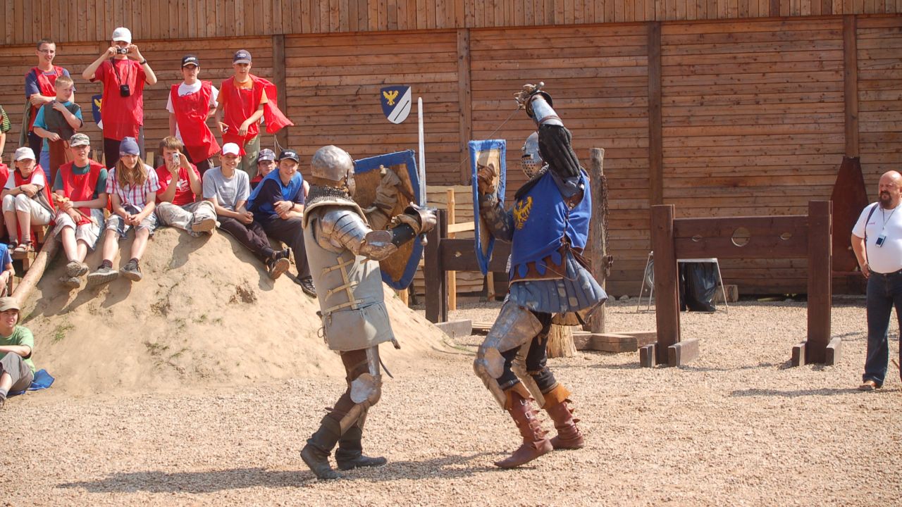 Zamieszkasz w średniowiecznej komnacie i dowiesz się wszystkiego, co rycerz wiedzieć i umieć powinien. U nas nauczysz się strzelać z łuku, miotać do celu toporem, nożem i włócznią. Dzięki zajęciom w zbrojowni, warsztatom walk na kije, wyplataniu kolczug, wykonywaniu proc, musztrze z pikami i wartom na grodowej wieży zgłębisz tajniki dawnej wojskowości. Spróbujesz też swoich sił w budowie i obsłudze machin oblężniczych i bitwie wodnej. Jednak największą próbą odwagi będą nocne wyprawy do lasu. Odbędą się warsztaty survivalu w kniei, nauka krzesania ognia, wieczorne gawędy przy ognisku i nocleg w namiocie rycerskim w leśnej głuszy.