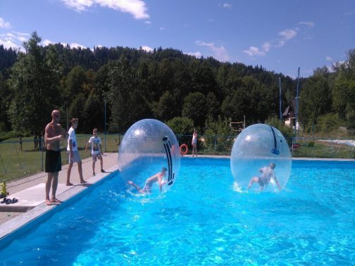 – Aquazorbing – Bieg po Wodzie – wskakujesz do wielkiej, 2-metrowej kuli i… ruszasz na basen! Turlanie, bieganie, ślizganie – totalna dawka śmiechu.