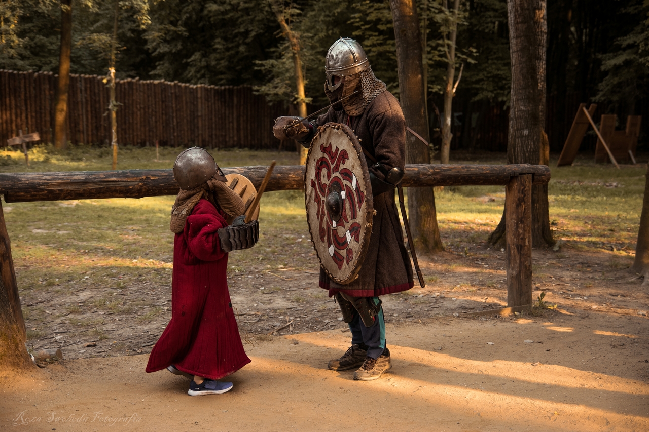 Pierwszego dnia dzieci przyjadą na Raciborski Gród Średniowieczny. Dzień rozpocznie się od zwiedzania grodu. Następnie uczestnicy wezmą udział w szkole walki na bezpieczne miecze, przymierzą zbroję wojów i sprawdzą, jak ciężkie są miecz i tarcza. Zmierzą się również w próbach, takich jak walki na równoważni oraz przeciąganie liny. W drugiej części dnia udamy się na basen.
