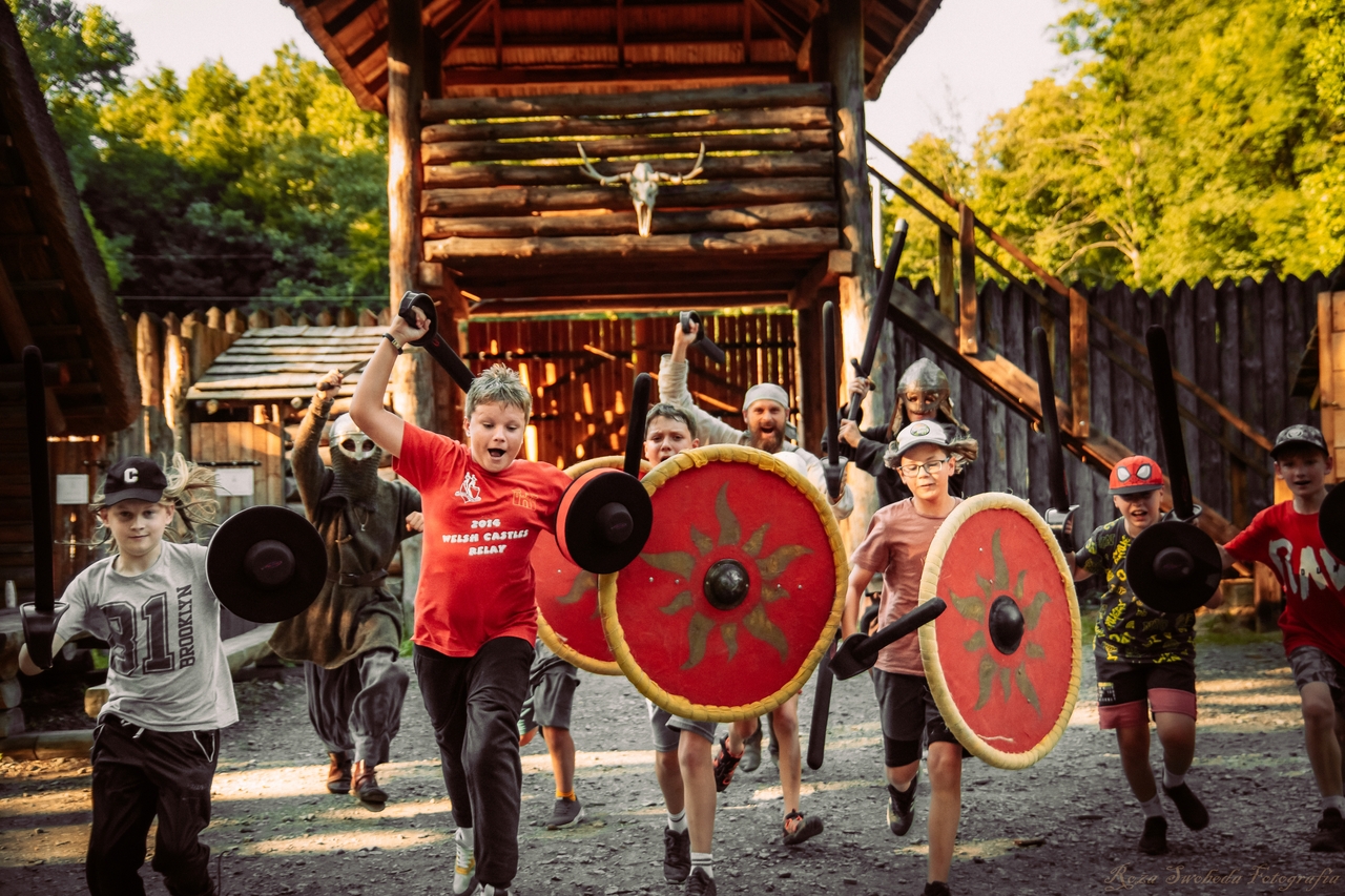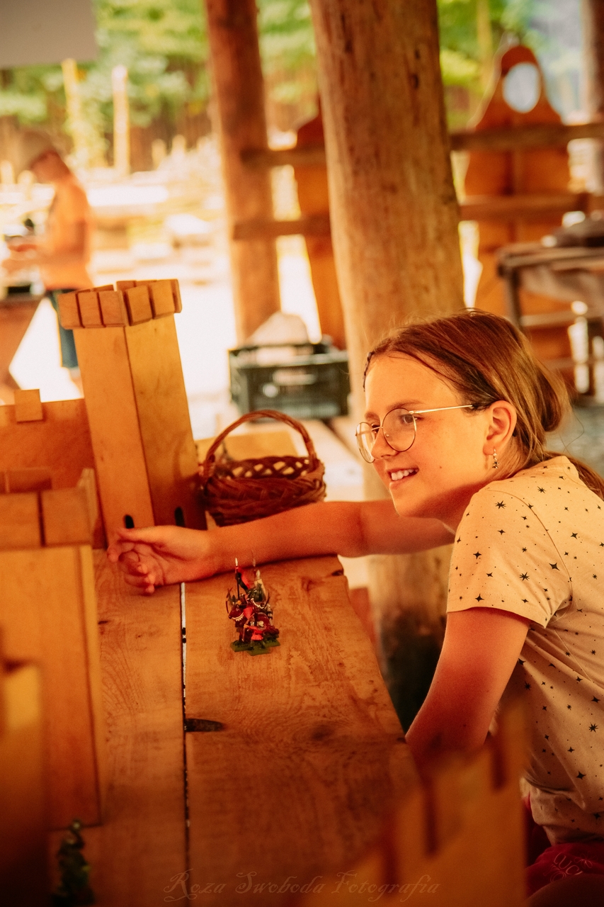 - Bogaty program zajęć przygotowany pod wiek, zainteresowania i umiejętności uczestników: szkoła miecza, łuku, bitwa o gród, szukanie skrzyni skarbów, gry terenowe, opieka nad zwierzętami, gry taktyczne i planszowe.