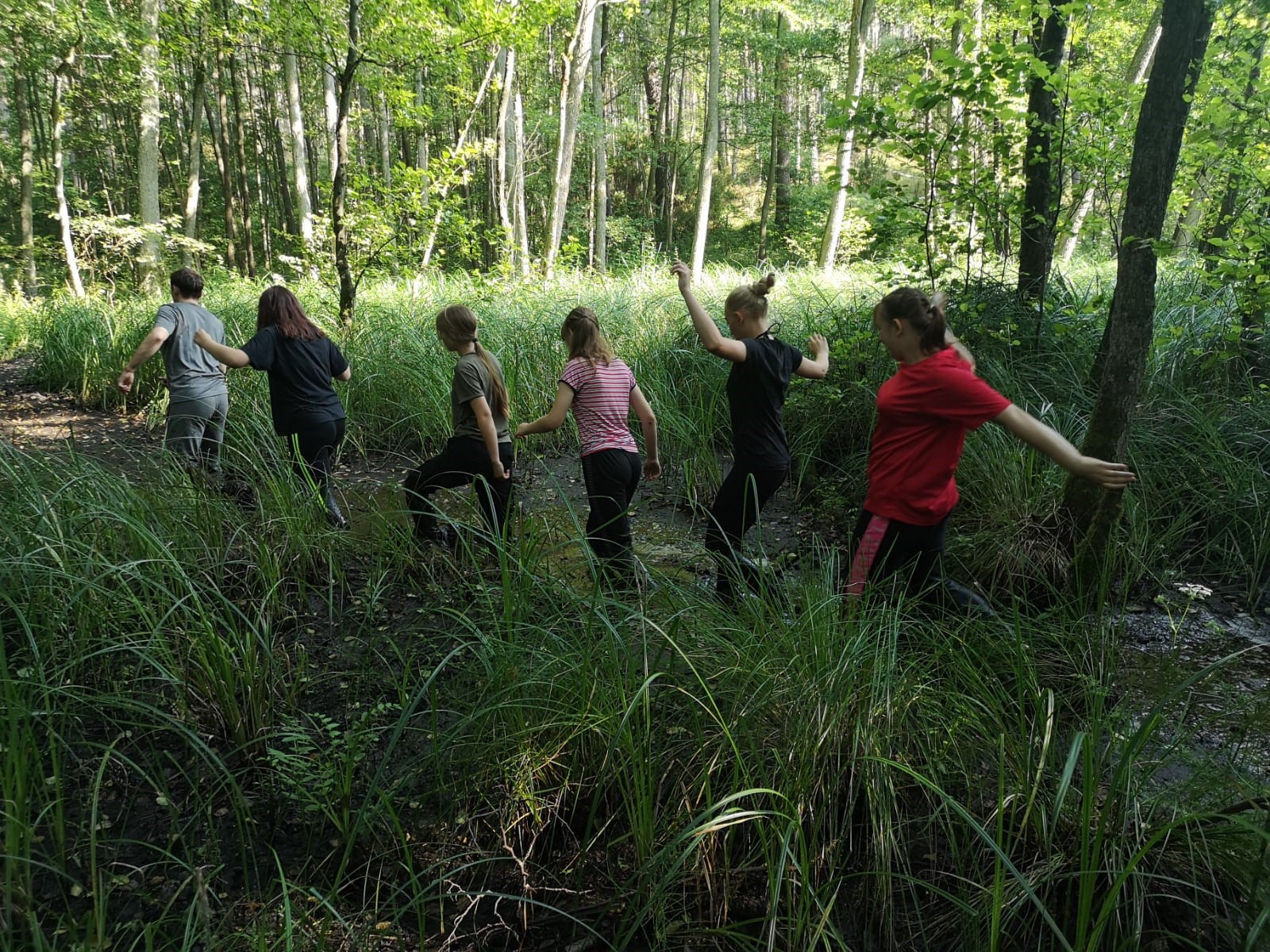 Całodobowa wyprawa survivalowa: z noclegiem „pod gołym niebem”, przeprawami przez bagna i jezioro.